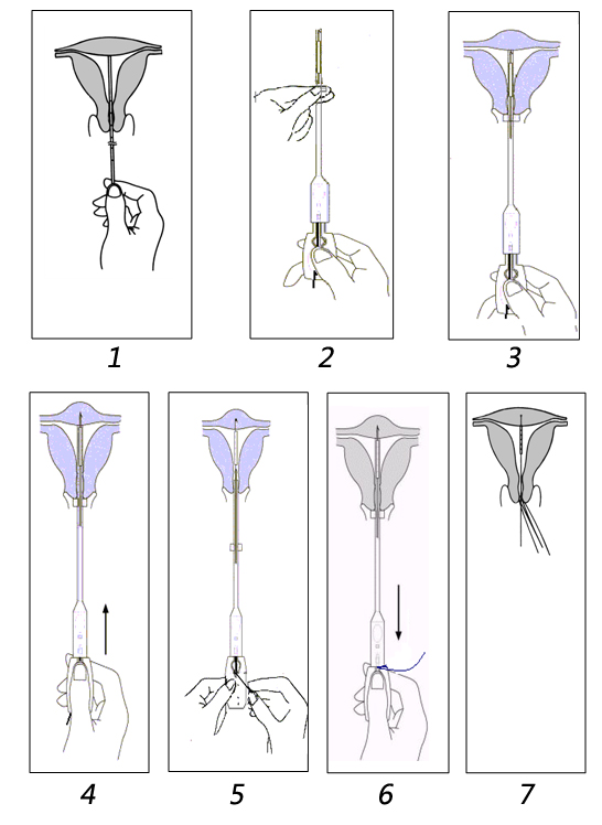 由于吉妮致美宮內節育器設計獨特, 因此醫生在放置前應熟悉吉妮致美的放置步驟,如圖所示: